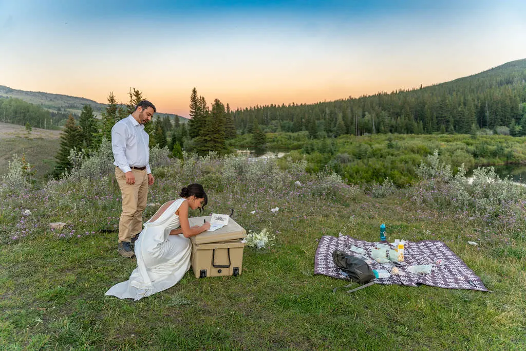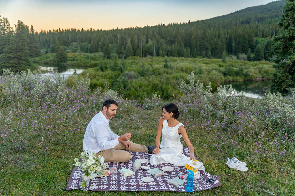 Afterward, they spread out a simple picnic and ate dinner in their wedding clothes as the light faded. Honestly? It felt less like a “wedding production” and more like a really meaningful, beautiful day where they just happened to get married.