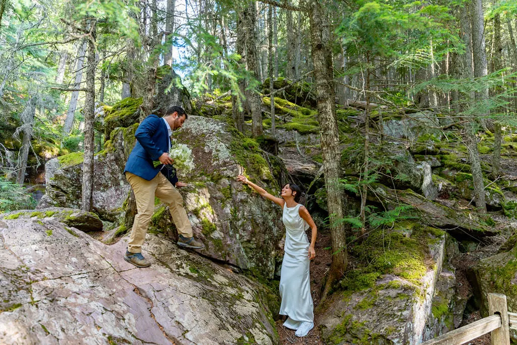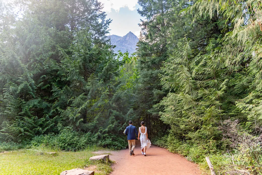 We started their day on the west side at Avalanche. They walked the trail together, surrounded by lush green forest, glacier water, and that moody, magical Glacier atmosphere. No tight timeline, no officiant yelling about the schedule—just exploring.